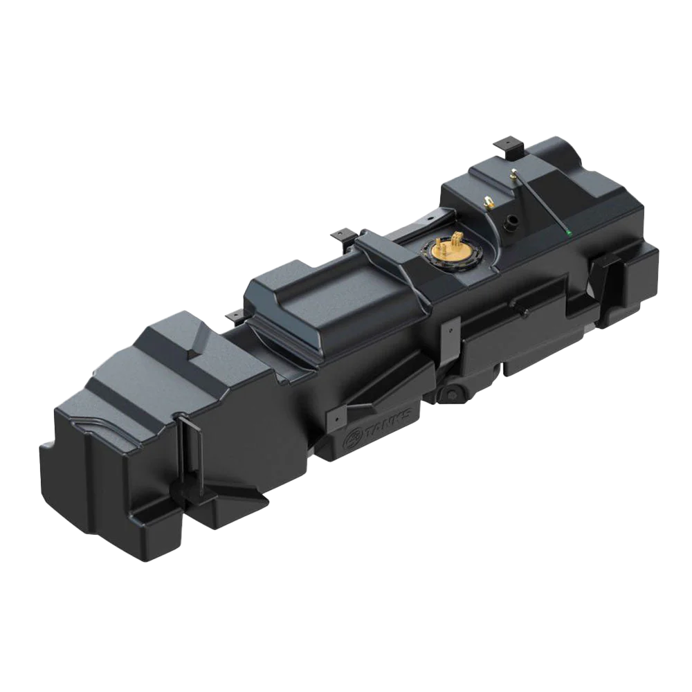 S&B's 70-gallon fuel tank replaces the OEM 35-gallon fuel tank. The replacement tank sits 3" below the OEM fuel tank shield and holds approximately 70 gallons of fuel. The float's empty position in the S&B Tank is the same as the OEM tank. Since the bottom surface area on the S&B Tank is larger, the 70-gallon tank with have a greater fuel reserve.