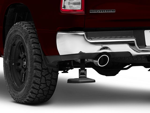 Go ahead and step on it. Bedstep is a real time saver. Not to mention knee and back saver. Strong and rugged, this non-slip, retractable bumper step quickly flips down with the nudge of a foot providing a faster, easier and safer way to load or unload your pickups cargo. Supports up to 300 lbs. Frame mounts under the rear bumper so it works even with an open tailgate or when towing.