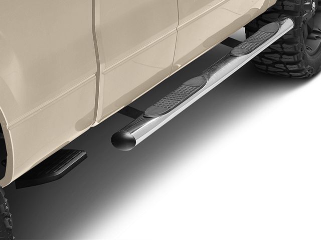 Side steps for hard-working trucks. The AMP Research Bedstep2 mounts just behind the cab, forward of the rear wheel, providing a faster, easier and safer route to access toolboxes, equipment and cargo in the bed. Easily installed, this frame-mounted, retractable truck step can be mounted on either side of the truck box, and it flips down or retracts with just the nudge of your foot.