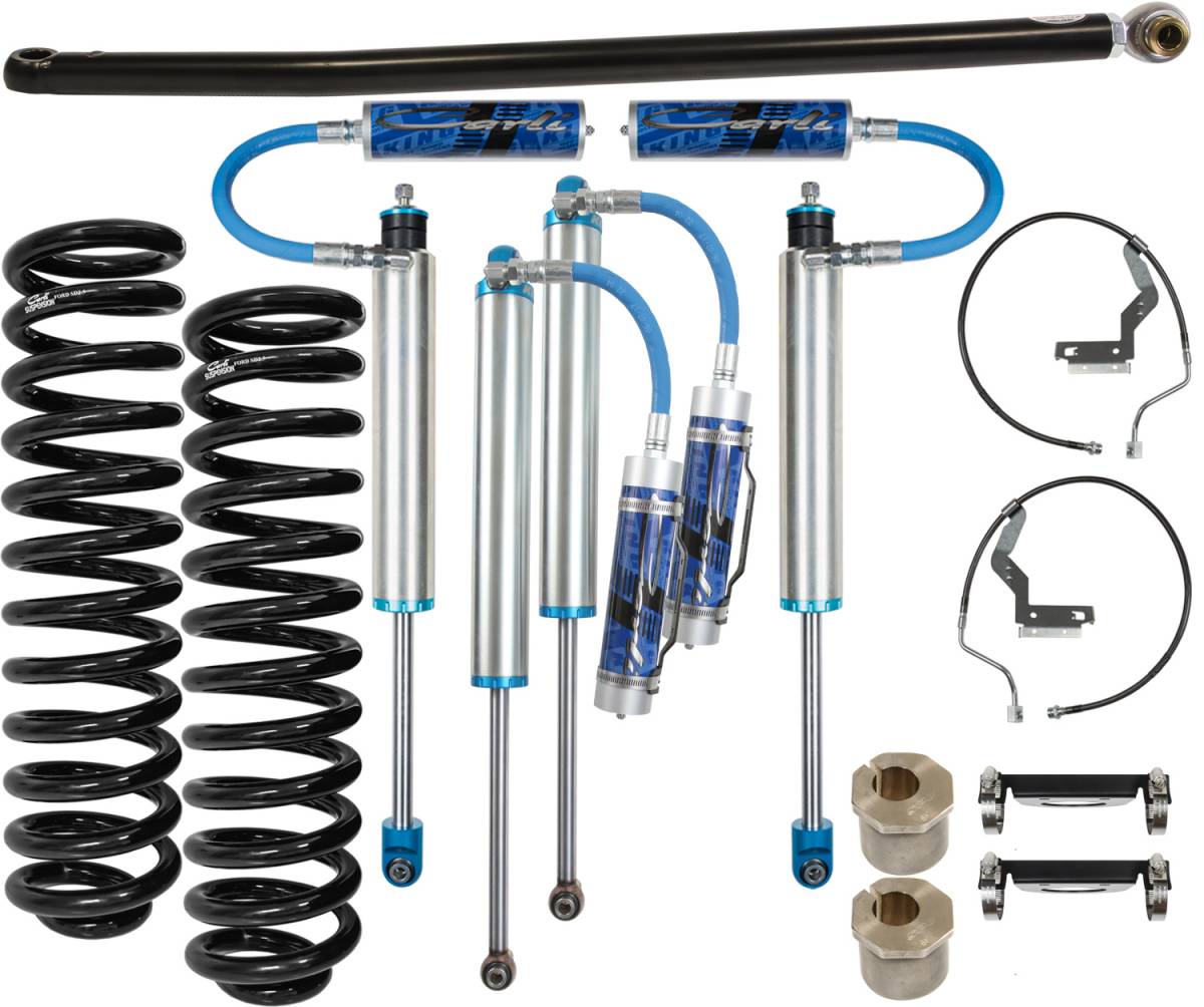 | CS-FPT25SPKG-LVL-11-GAS | Carli Custom Tuned KING 2.5" Remote Reservoir Shocks, Front and Rear with Stainless Shafts & Reservoir Mounts |