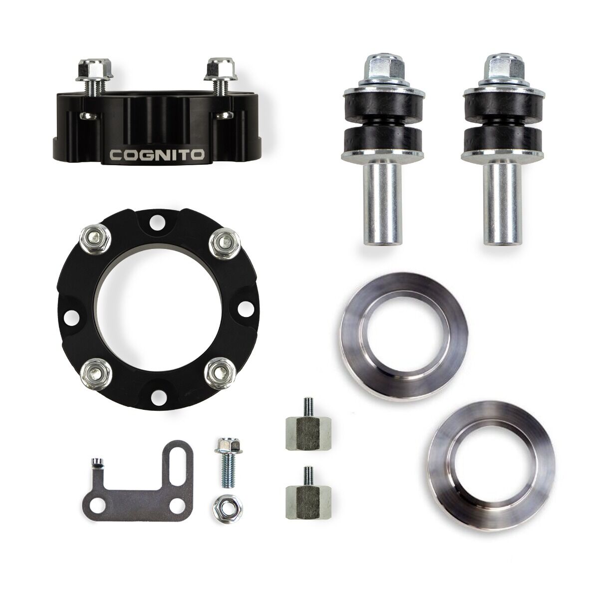 - 3” of front lift via anodized billet aluminum strut spacers