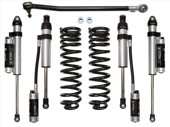This ICON Vehicle Dynamics 2.5” suspension system is a great way to level your 4WD 2017-2019 Ford F250/350 Super Duty while drastically improving ride quality and performance. The Stage 4 system is perfect for on-road and off-road use including towing, job site duty, and spirited off-road adventure. ICON's Stage 4 System combines dual rate coil springs, alignment cams, ICON CDC Valve 2.5 Aluminum Series front remote reservoir and rear piggyback reservoir shocks, and an all-new adjustable track bar designed specifically for the 2017-UP Super Duty. With the endless hours ICON has spent testing and tuning our suspension components and shocks as a complete package, you can be rest assured you have the best suspension solution on the market.