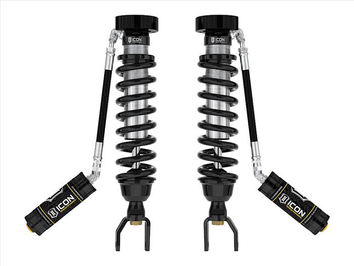 ICON Vehicle Dynamics V.S. 2.5 Series coilover shocks are an incredible upgrade for the front end of 2019-2023 Ram 1500 trucks. ICON’s Vehicle-specific valving provides a sport tuned feel on and off-road while 2-3” of lift height adjustability allows the use of larger, more aggressive wheel and tire combinations. The larger 2.5” shock body and increased piston area over stock components and application specific length to maximize wheel travel provide improved damping ability and outstanding ride characteristics across varying types of terrain. These remote reservoir coilovers will maintain lower operating temperatures and offer more consistent operation during extended or aggressive off-road use compared to internal reservoir versions. When paired with ICON 2.0 Aluminum Series or 2.5 Aluminum Series rear shocks vehicle control will be balanced front to rear, resulting in the best overall driving experience for your Ram 1500 truck.