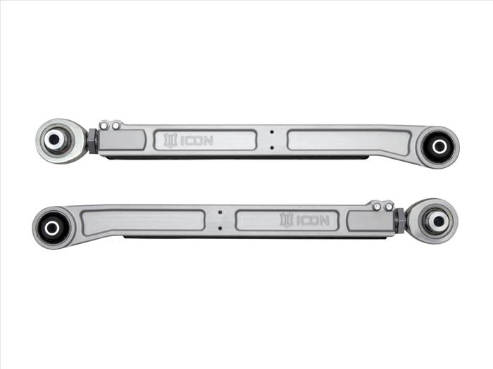ICON’s billet aluminum rear lower link arms for the 2020-2023 Jeep Gladiator and 2019-2023 Ram 1500 are a significant upgrade over the factory units due to increases in strength, adjustability, and performance. These links are made from CNC machined 6061 aluminum in-house and anodized for corrosion resistance, providing a major improvement over the construction of the stock units. This rear lower link arm kit features PTFE-lined FK rod ends for increased suspension articulation, reduced deflection, and on-vehicle link arm length adjustability using ICON’s double adjuster system. Additionally, multi durometer bushings are installed that allow for noise free operation and maximum angularity without the need for periodic greasing and/or other maintenance. The quality rod ends and bushings featured in these link arms allow the vehicle’s suspension to function as intended, without the bushing bind that limits the vehicle in stock form. ICON’s engineering team has also gone a step further in the development of these products by incorporating features such replaceable nylon rock sliders to prevent any hang-ups on the trail. After the design phase was completed ICON engineers put these parts through the “ICON1K” real-world test cycle for a final stamp of approval.