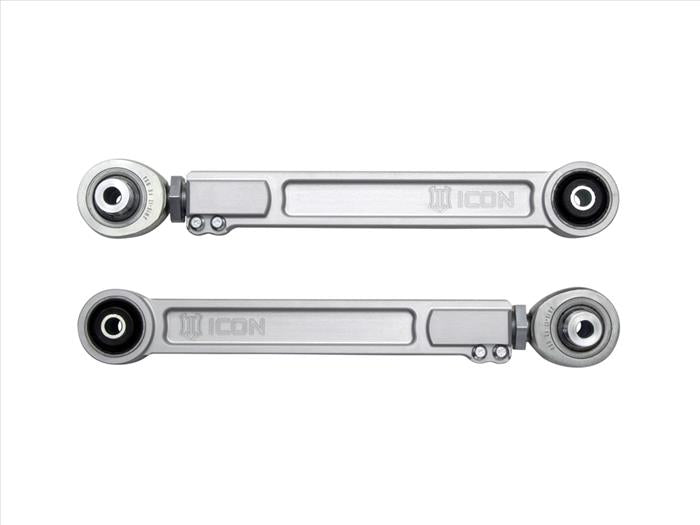 ICON’s billet aluminum rear upper link arms for the 2020-2023 Jeep Gladiator and 2019-2023 Ram 1500 are a significant upgrade over the factory units due to increases in strength, adjustability, and performance. These links are made from CNC machined 6061 aluminum in-house and anodized for corrosion resistance, providing a major improvement over the construction of the stock units. This rear upper link arm kit features PTFE-lined FK rod ends for increased suspension articulation, reduced deflection, and on-vehicle link arm length adjustability using ICON’s double adjuster system. Additionally, multi durometer bushings are installed that allow for noise free operation and maximum angularity without the need for periodic greasing and/or other maintenance. The quality rod ends and bushings featured in these link arms allow the vehicle’s suspension to function as intended, without the bushing bind that limits the vehicle in stock form. After the design phase was completed ICON engineers put these parts through the “ICON1K” real-world test cycle for a final stamp of approval.
