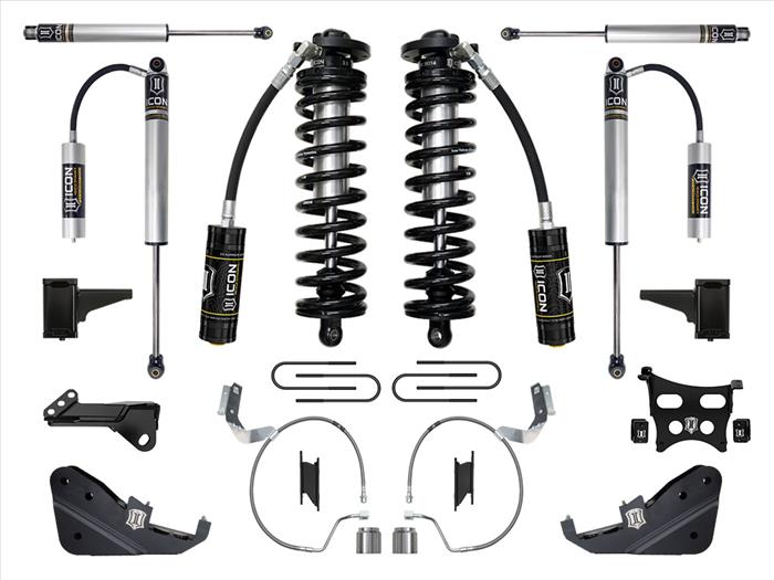This ICON Vehicle Dynamics 4-5.5” coilover conversion system is a great way to lift your 4WD 2023 Ford F-250/F-350 Super Duty while drastically improving ride quality and performance and allowing fitment of larger, more aggressive wheel and tire combinations. This Stage 2 system is perfect for on-road and towing use, as well as mild off-road use like job site duty and washboard gravel roads.
