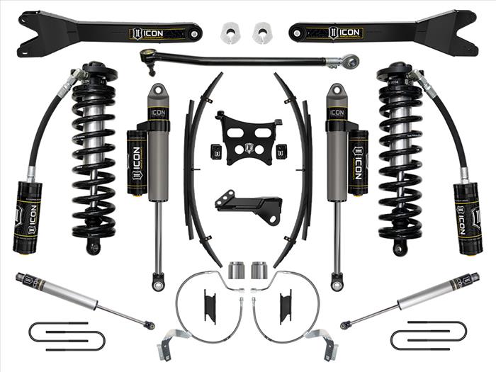 This ICON Vehicle Dynamics 4-5.5” coilover conversion system is a great way to lift your 4WD 2023 Ford F-250/F-350 Super Duty while drastically improving ride quality and performance and allowing fitment of larger, more aggressive wheel and tire combinations. This Stage 4 system is perfect for on-road and towing use, as well as job site duty, washboard gravel roads, and more aggressive off-road adventures.