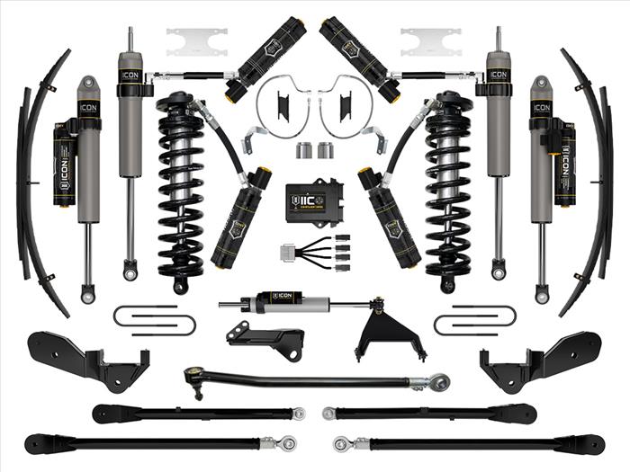 This ICON Vehicle Dynamics 4-5.5” coilover conversion system is a great way to lift your 4WD 2023 Ford F-250/F-350 Super Duty while drastically improving ride quality and performance and allowing fitment of larger, more aggressive wheel and tire combinations. This Stage 9 system is perfect for on-road and towing use, as well as job site duty, washboard gravel roads, and more aggressive off-road adventures.